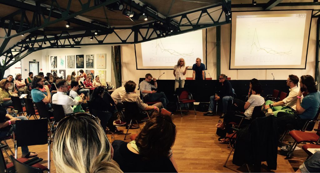 Am Sonntag, den 22. Mai fand in der seit Oktober 2018 fertig gestellten neuen Hochschule für Schauspielkunst Ernst Busch (HfS) ein Tag der offenen Tür statt, zu dem auch die schauspielnahen Verbände BFFS, ver.di, GDBA, JEN (Junges Ensemble Netzwerk) und LAFT (Landesverband freie darstellende Künste Berlin) geladen waren, um sich Studierenden und anderen Interessierten vorzustellen. […]